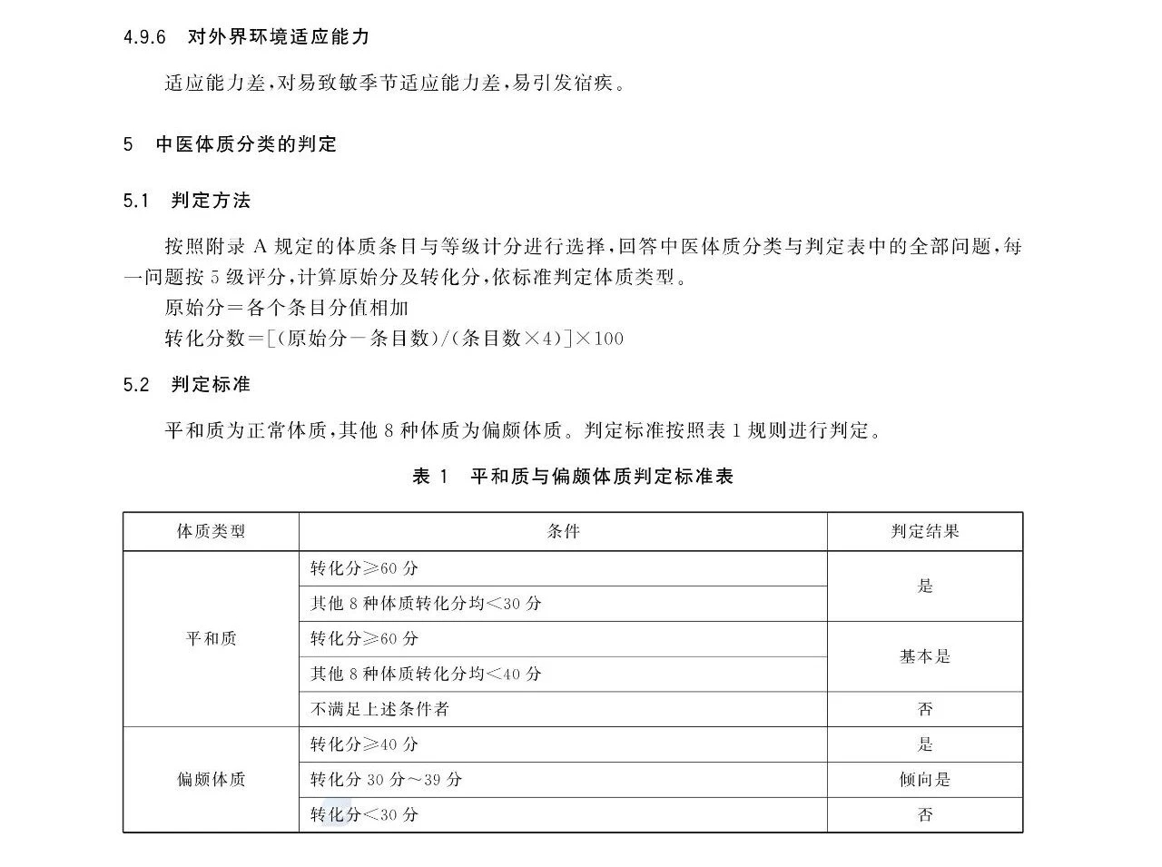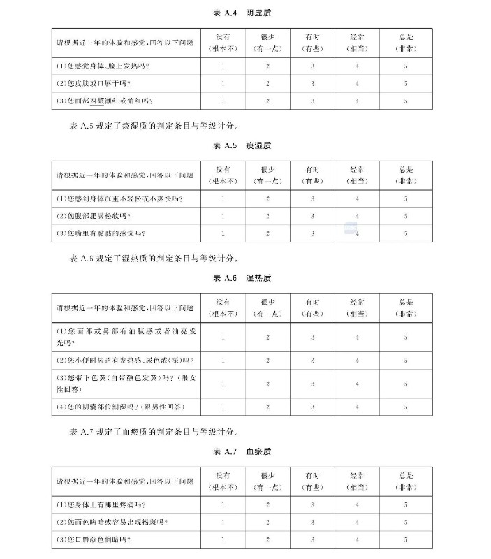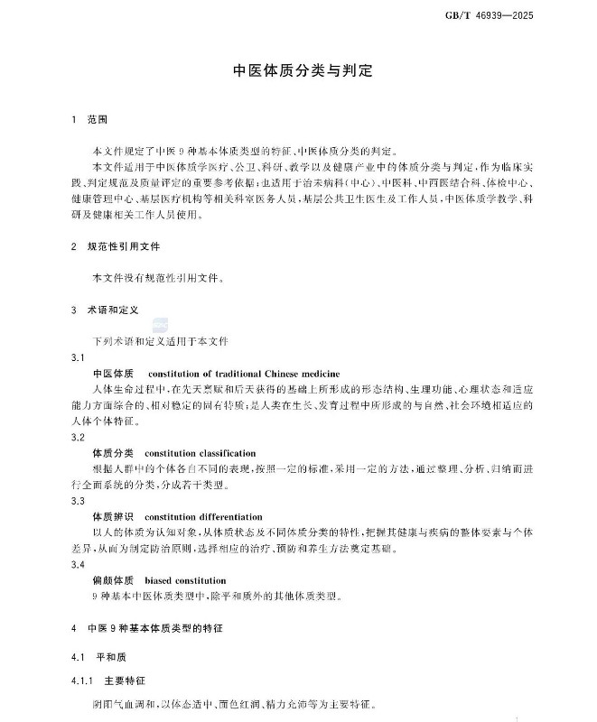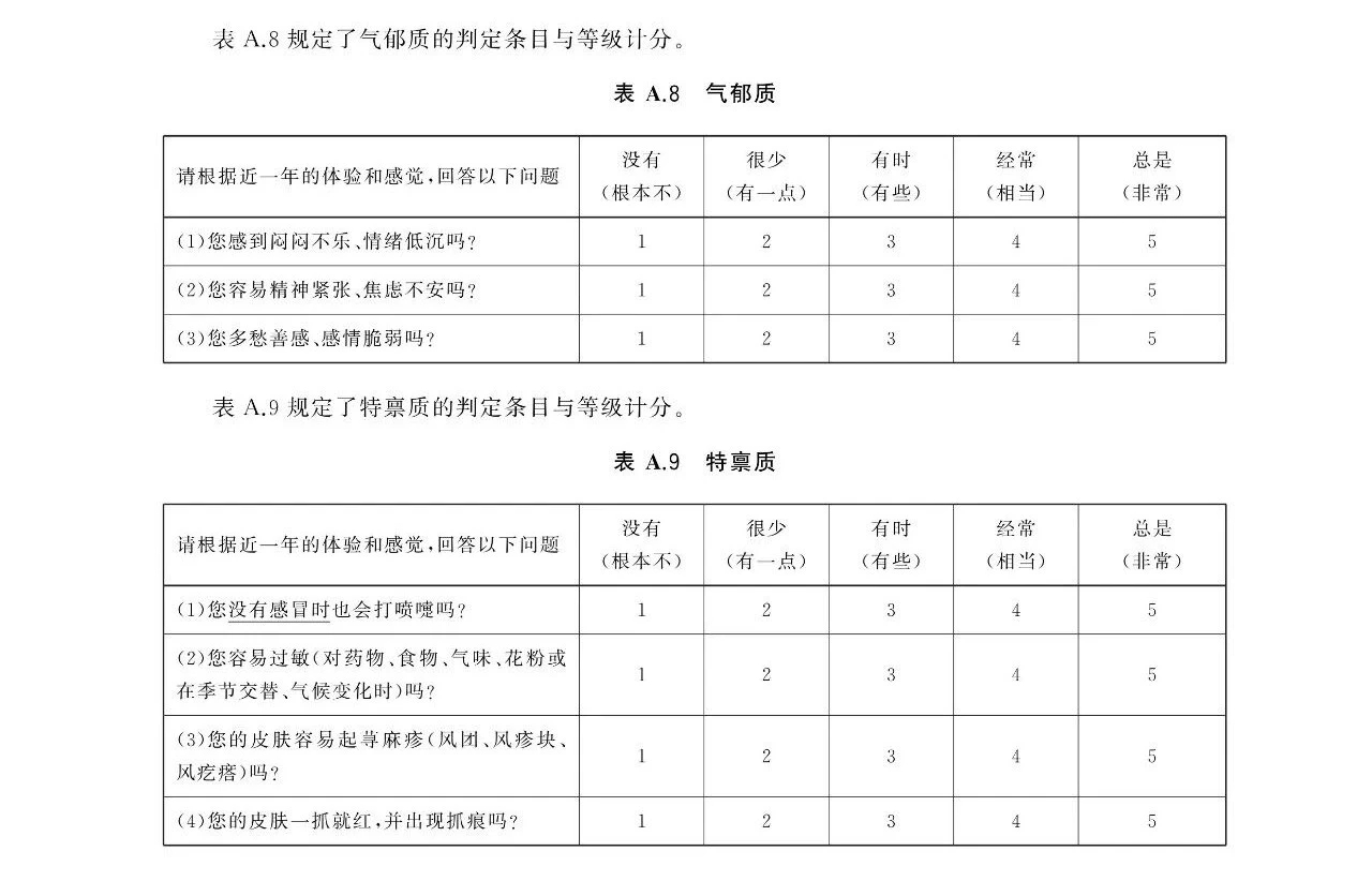 中医体质分类与判定国家标准